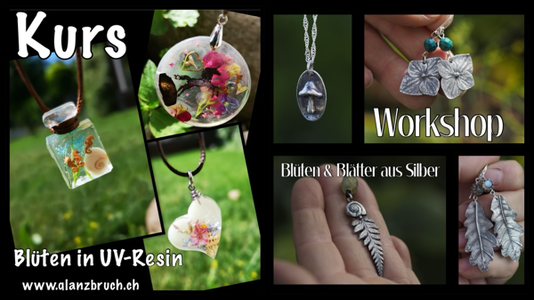 Entdecke die Kunst des Schmuckdesigns mit UV-Resin! In meinen Kursen erlernst du die Grundlagen des Kunstharz-Giessens und gestaltest dein eigenes Schmuckstück - von der ersten Idee bis zur fertigen Kreation. Lass deiner Kreativität freien Lauf und schaffe deinen persönlichen Glanzbruch.