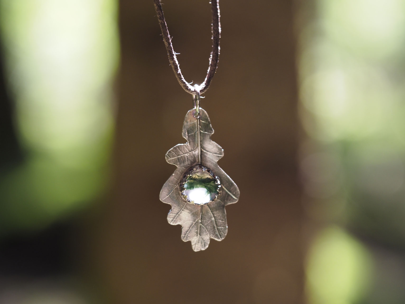 Mein Eichenblatt aus Silber mit einem wunderschönen Moosachat eingearbeitet.