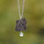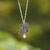 Dieser Anhänger enthält echte Lavendelblüten. Diese befinden sich in einem Glastropfen, der in Sterlingsilber eingefasst ist und mit einem Blatt verziert ist. Oben ist ein wunderschön funkelnder Larimar-Edelstein eingearbeitet.