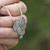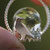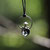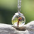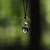 Diese Münze ist aus Silber hergestellt und zeigt ein verwunschenes Tor mitten im Wald. Am Anhänger ist eine recycelte Glasperle angebracht die wunderschön grün leuchtet.
