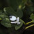 Ein silbernes Birkenblatt mit einem kleinen Pilz.
