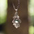 Die Hortensienblüte ist aus reinem Silber von Hand hergestellt. Daran hängt eine wunderschöne Topas-Edelsteinperle. Die Kette ist versilbert und hat eine Länge von 45 cm.
