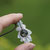 Die Hortensienblüte ist aus reinem Silber von Hand hergestellt. Daran hängt eine wunderschöne Chrysokoll-Edelsteinperle. Die Kette ist versilbert und hat eine Länge von 45 cm.