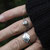 Von Hand geschmiedeter Ring mit dem kleinen Tautropfen aus Mondstein daran. Der Ring ist aus recyceltem Silber, der Tautropfen aus einer Mondsteinperle.
