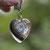 Vergissmeinnichtblüten, Haare und der Name sind in Kunstharz eingegossen und zu einem Herz verarbeitet.